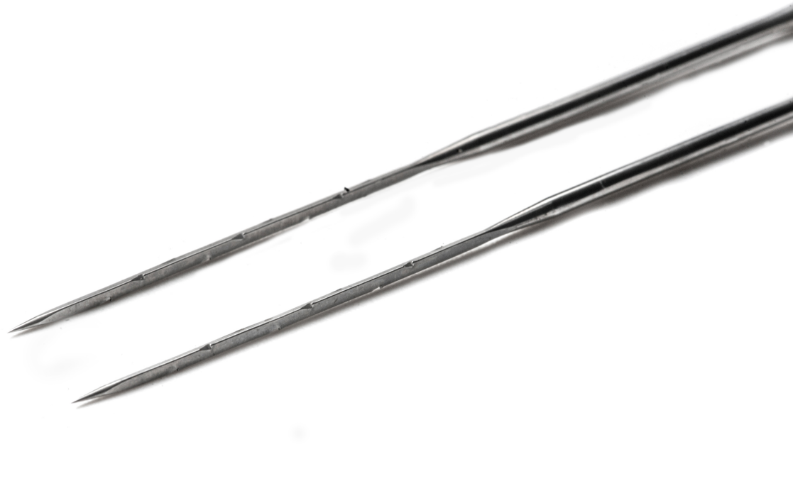 常用无纺刺针每一棱带三个钩刺,在一些用底布材料的特殊用途上,只在一棱或两棱上带钩刺。